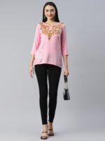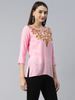 Pink Self Chikankari Short Kurti