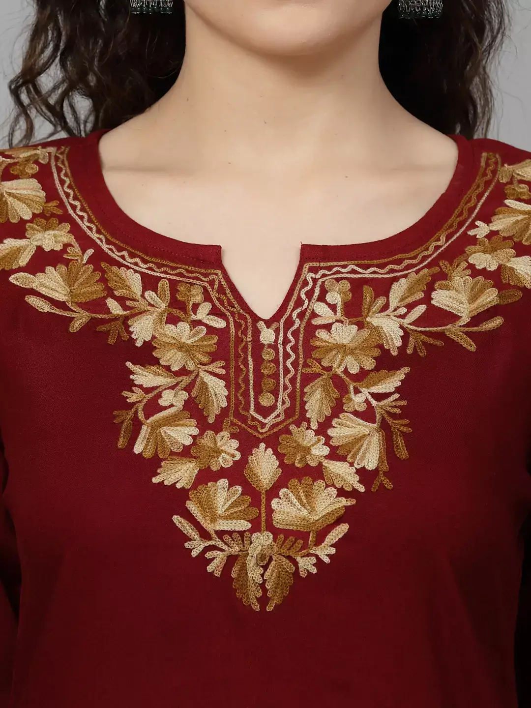 Hiba Maroon Self Embroidered Short Kurti ₹400.00